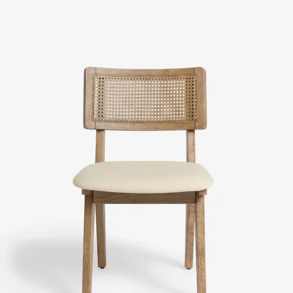 Cane Back Dining Chair with Upholstered Seat Classic Wooden Design