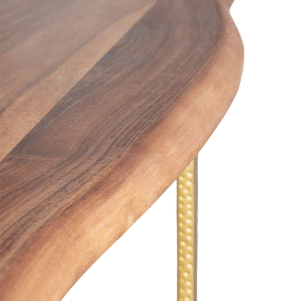 Luxury Dining Table with Acacia Wood Top and Hammered Gold Metal Base