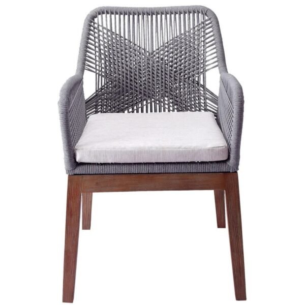 Armchair With Natural Finish Wooden Leg & Grey Color Back Rope