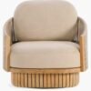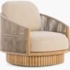 Beige Swivel Rope Lounge Chair – Outdoor Teak Armchair with Rotating Base