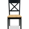 This Black Wooden Dining Chair features a modern yet classic X-back design that adds a touch of elegance to any room. The seat is crafted from natural wood, giving it a warm and inviting feel. The black-painted frame contrasts beautifully with the light-toned seat, making it a statement piece for both rustic and contemporary interiors.