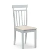 The backrest of the White Wooden Dining Chair features a slatted design that offers both ergonomic support and aesthetic elegance. Its slightly curved structure follows the natural contour of your back, encouraging proper posture and comfort. The tapered legs provide added stability, making this chair a reliable seating option for any setting.