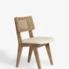 Wooden dining chair designs have become more than just functional furniture—they represent style, comfort, and a reflection of lifestyle choices. This elegant chair, featuring a handcrafted solid wood frame and a woven cane backrest, is a stunning addition to any dining space, office corner, or creative nook. Its natural wood finish and neutral upholstered cushion create a perfect balance of tradition and minimalism.